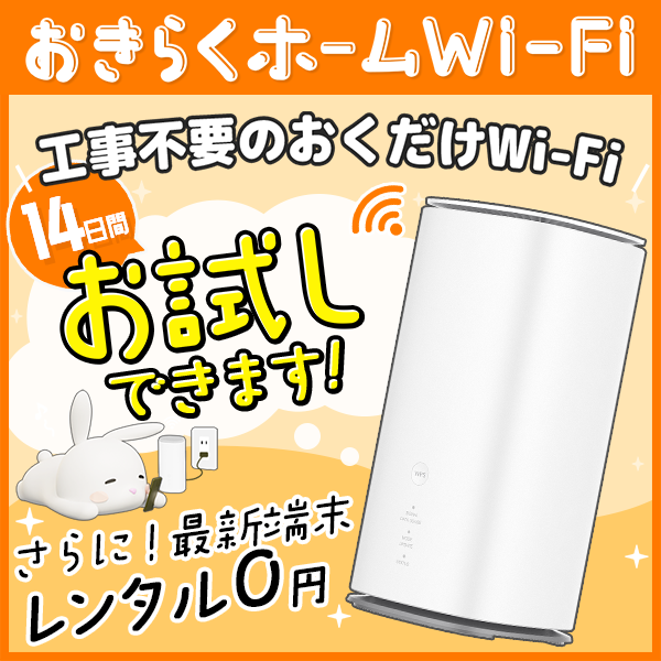 工事不要、簡単に使える高速通信!おきらくホームWi-Fi激安について